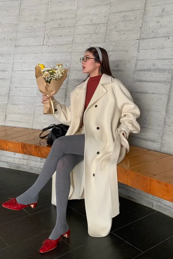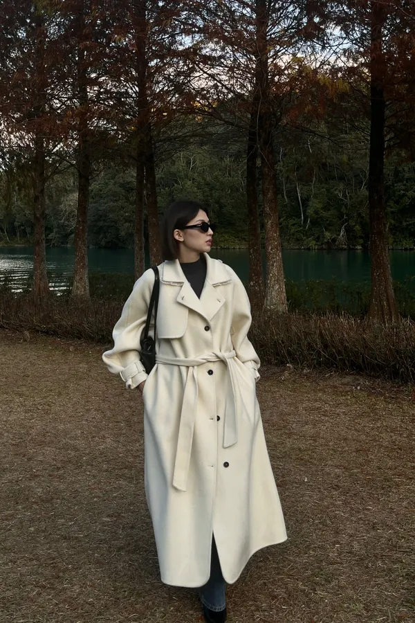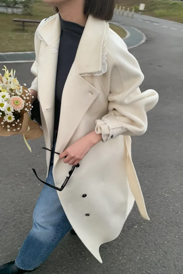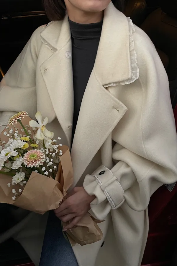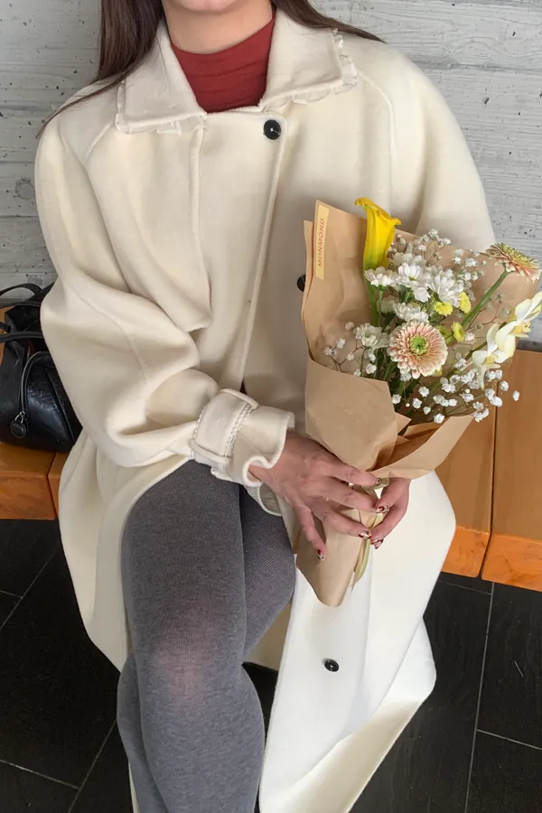 100%Handmade Hailey Wool Coat(White)