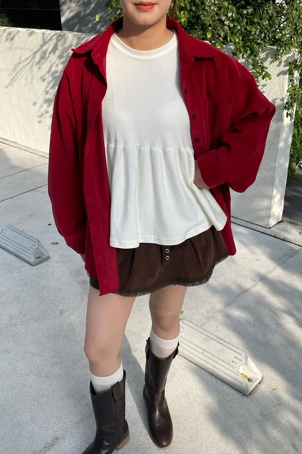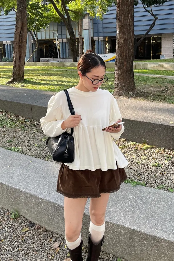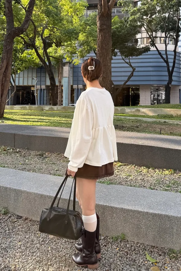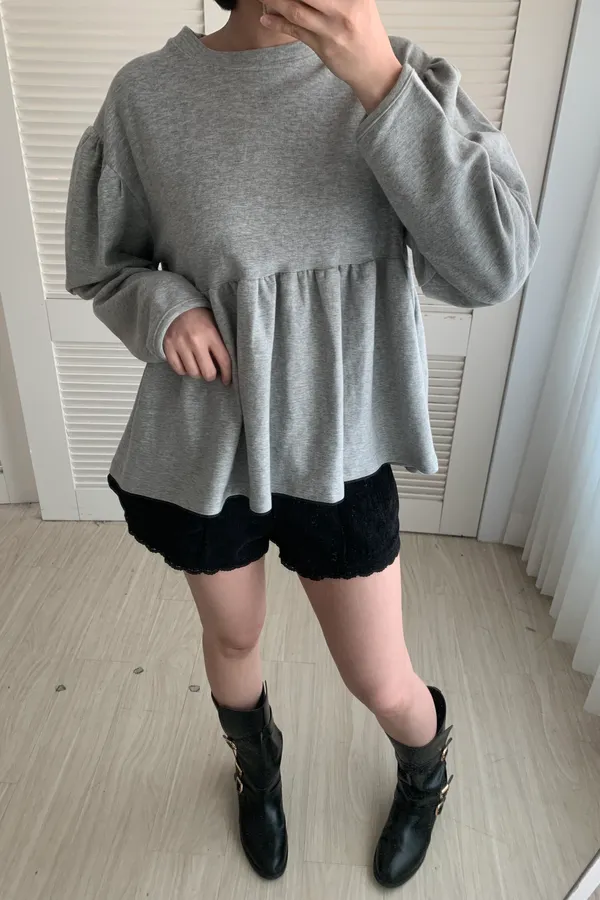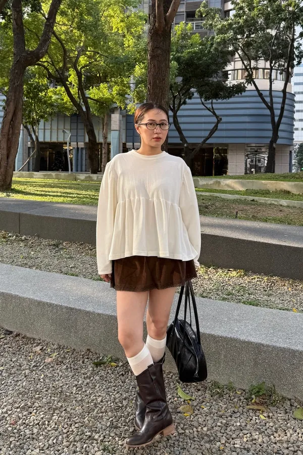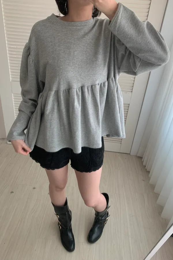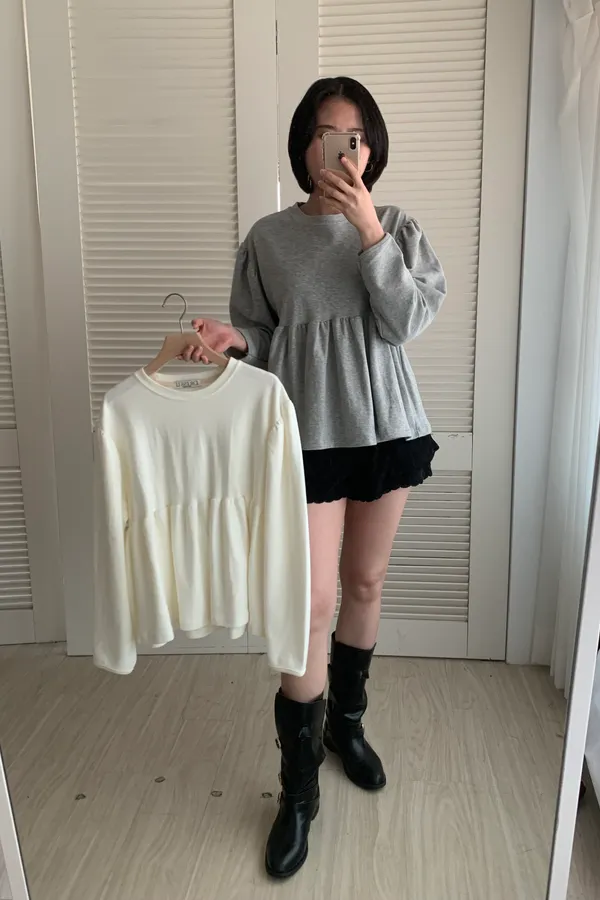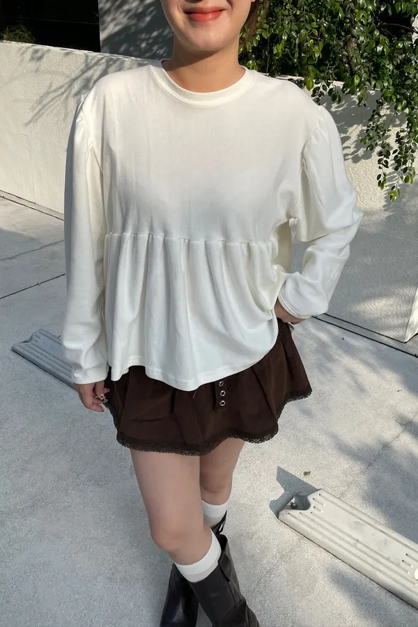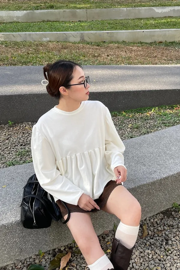 A07 澎袖落肩抓皺上衣