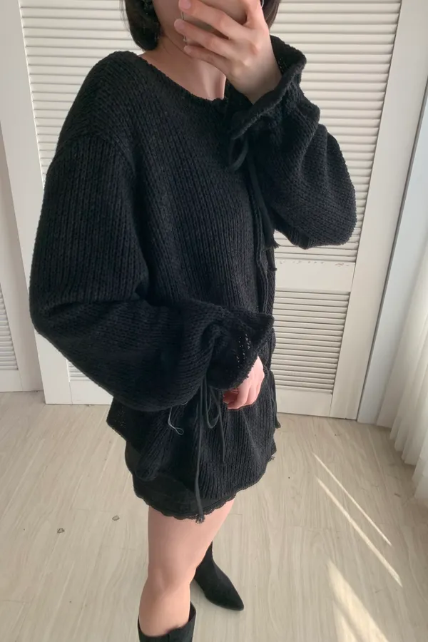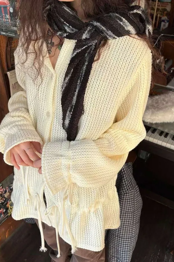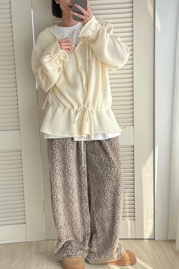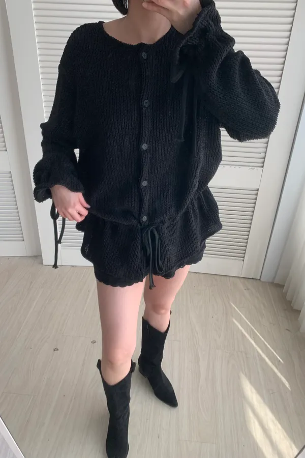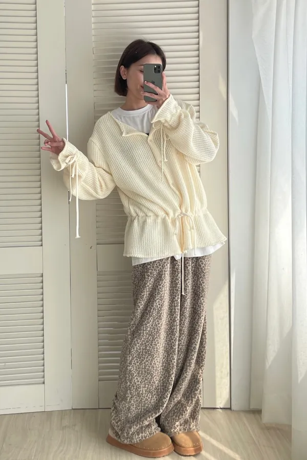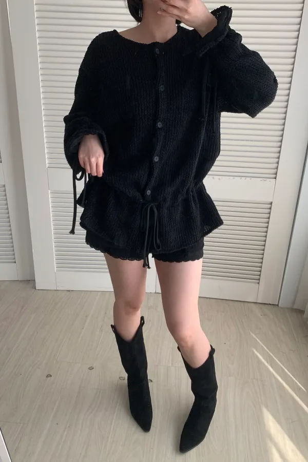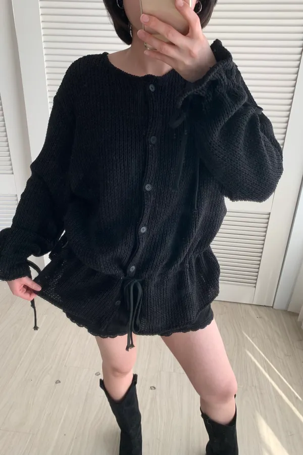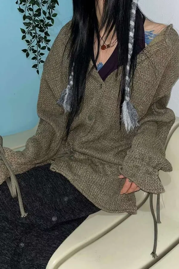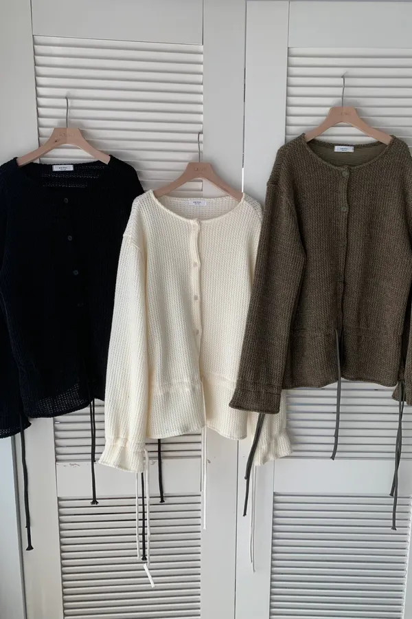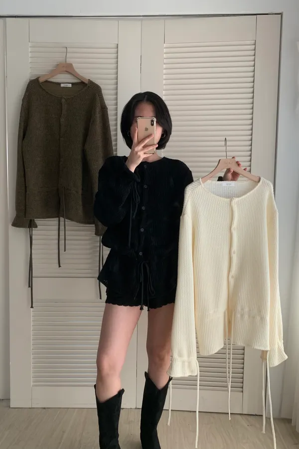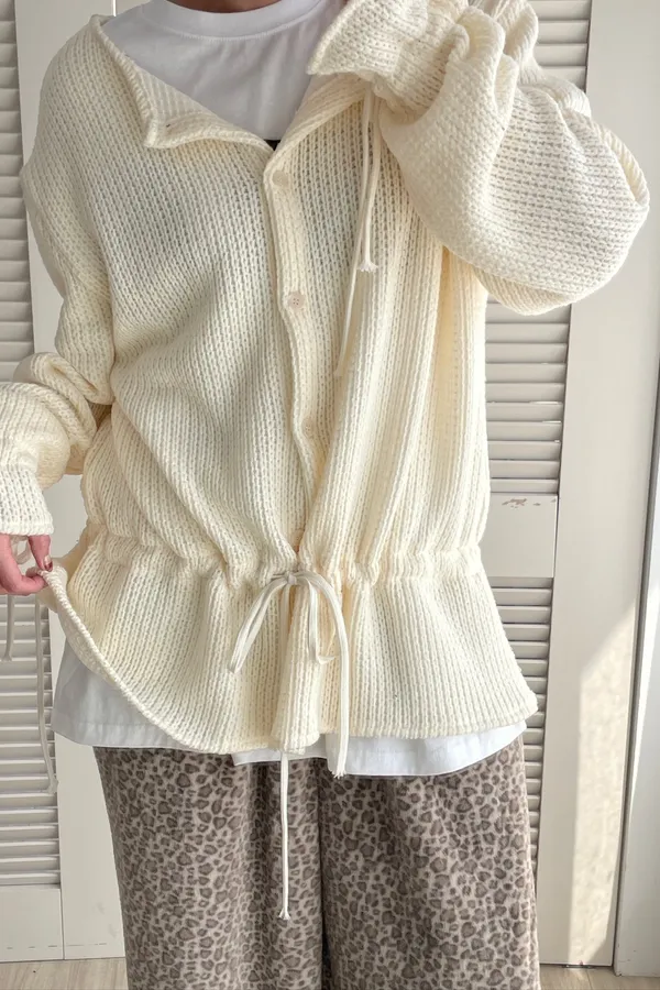 A13 針織抽繩圓領排釦上衣