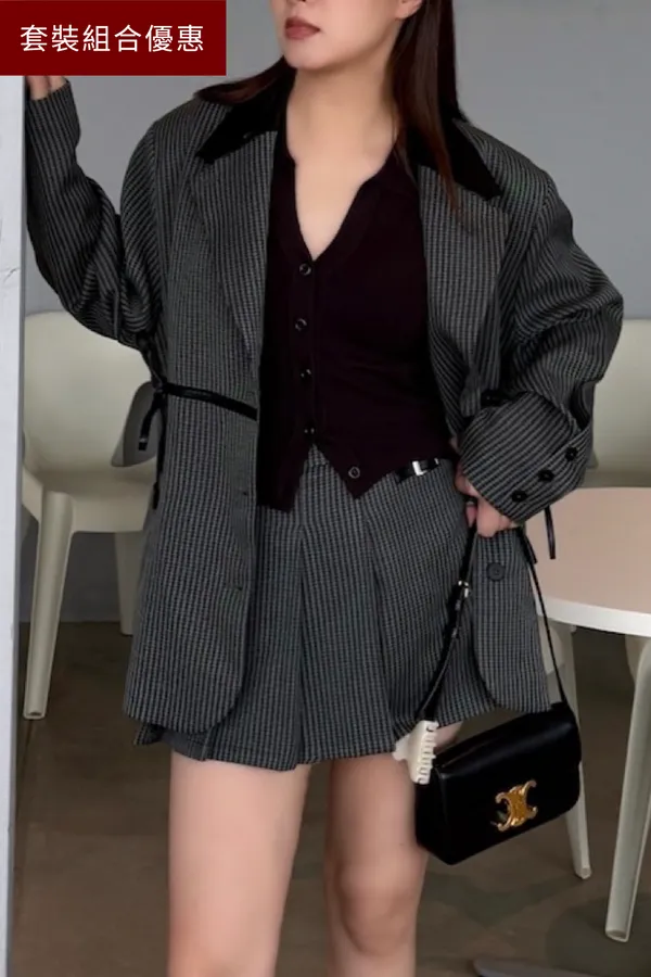 預購 Preppy Girl 千鳥格西外套裝 (胡克綠)