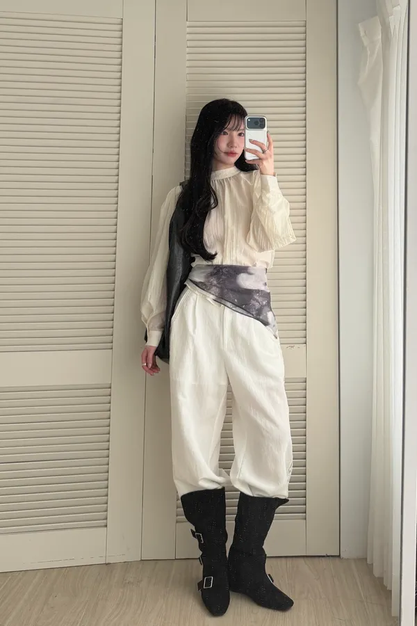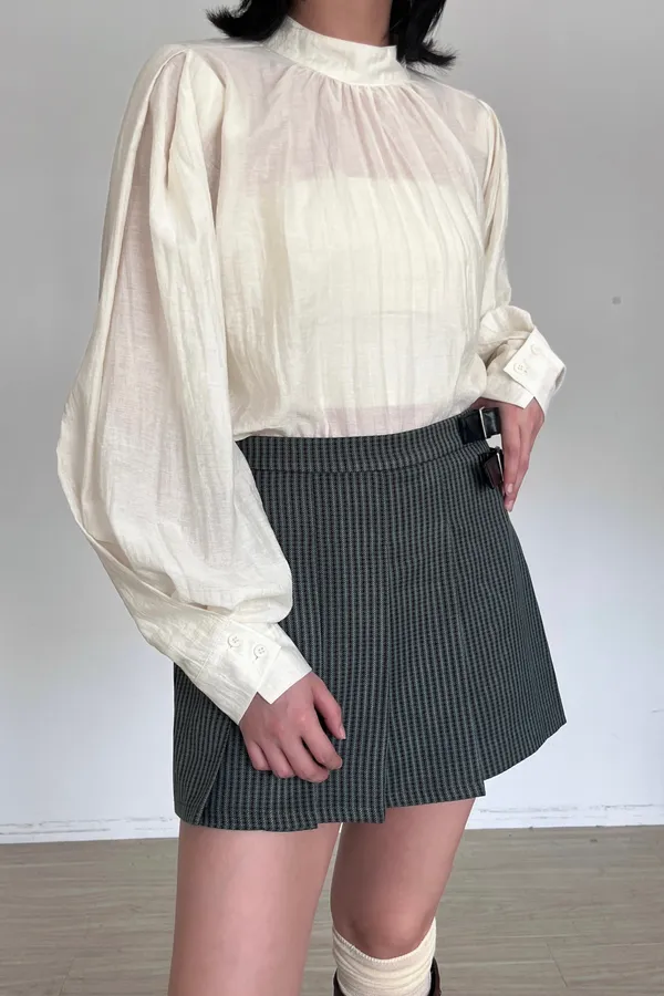 淡顏感綁帶澎袖上衣 (奶白)