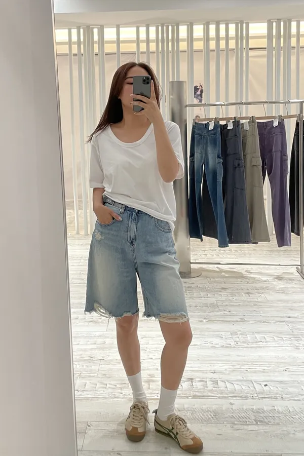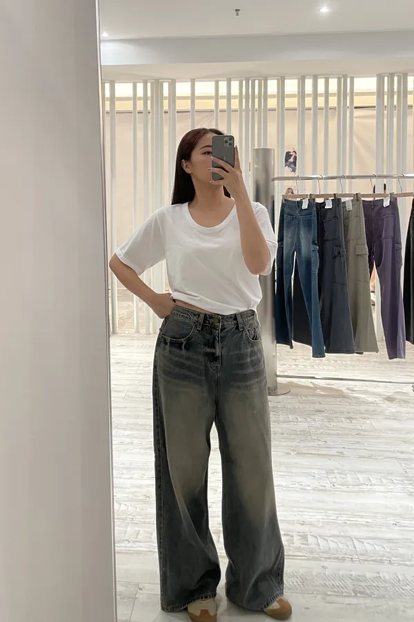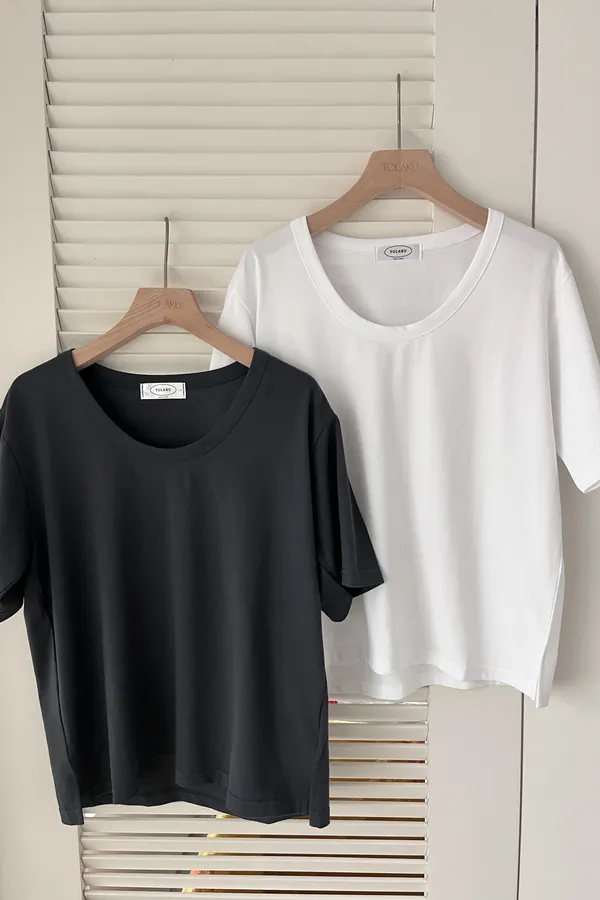 U領棉料素面T