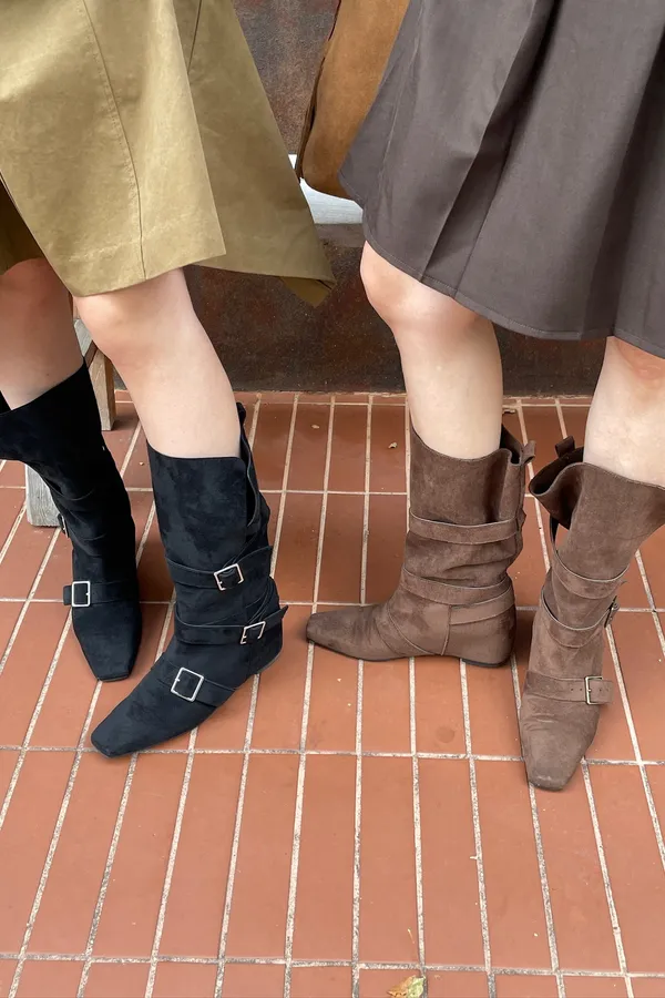 A31 尖頭麂皮皺皺中筒靴