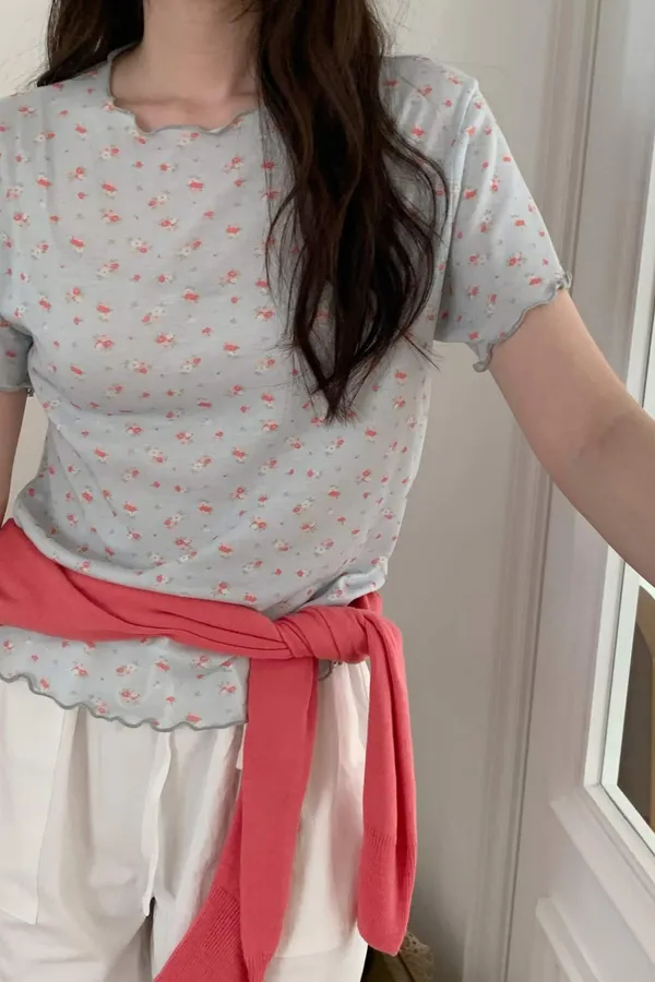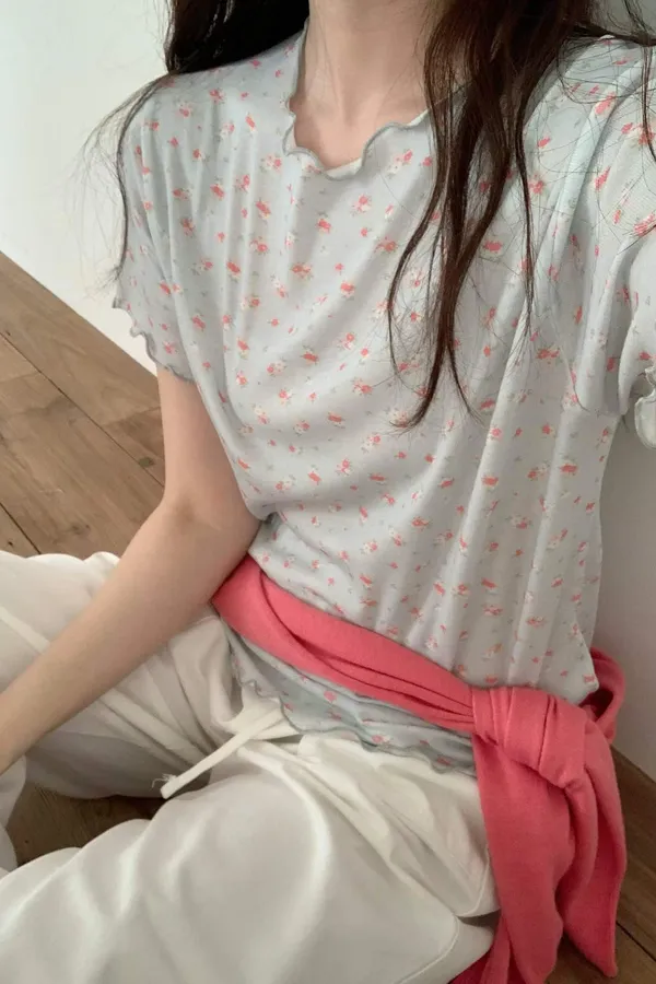 M01 小碎花木耳邊上衣